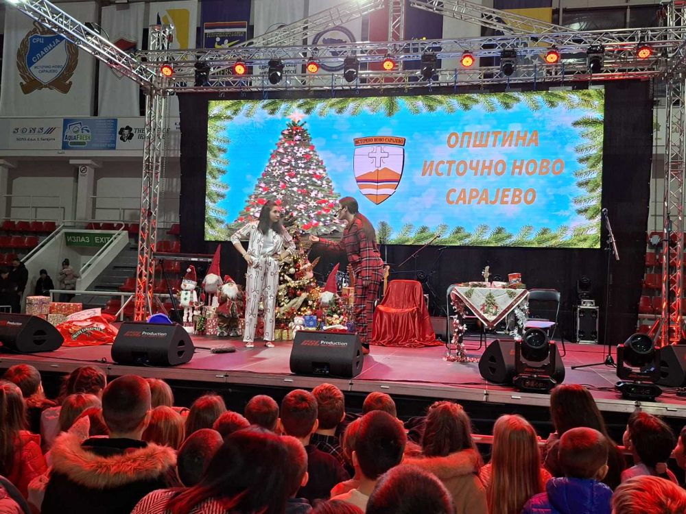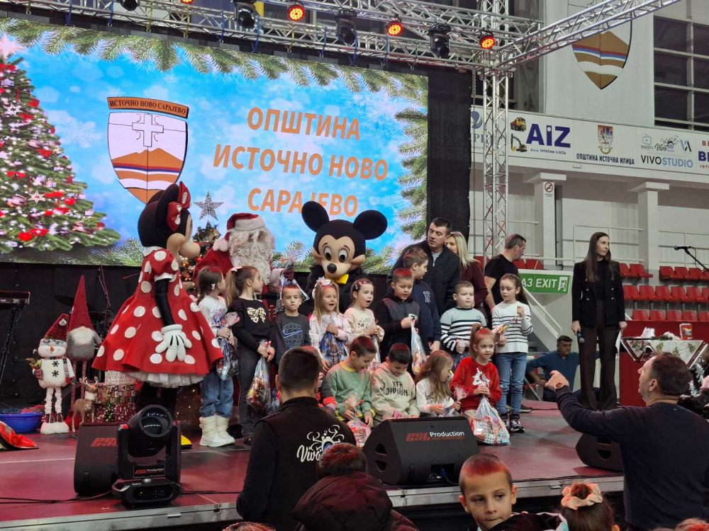 Opština Istočno Novo Sarajevo i ove godine organizovala je svečanu podjelu novogodišnjih paketića i proslavu dječije Nove godine u sportskoj dvorani na Trgu Republike Srbije.