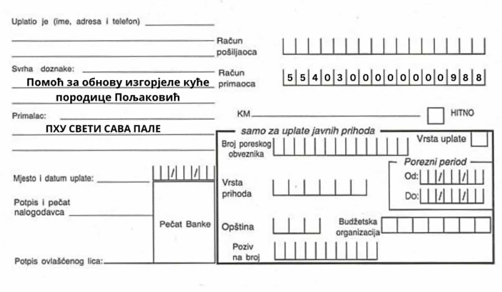 Pravoslavno humanitarno udruženje ''Sveti Sava'' sa Pala pokrenulo je humanitarnu akciju za prikupljanje pomoći za sanaciju krovne konstrukcije kuće koja je juče izgorjela u Donjoj Ljubogošti.