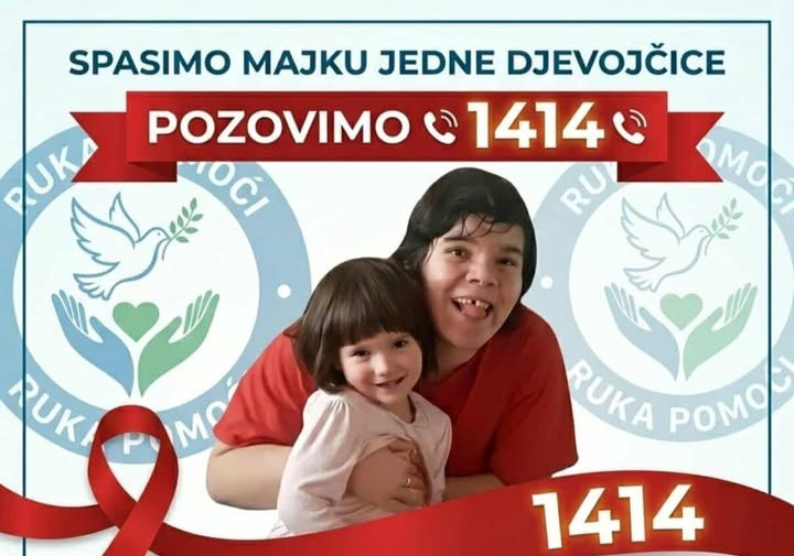 Pozivom na humanitarni broj 1414 darujete 1KM za nastavak njenog liječenja. Broj je aktivan od 1. aprila do 31. maja.