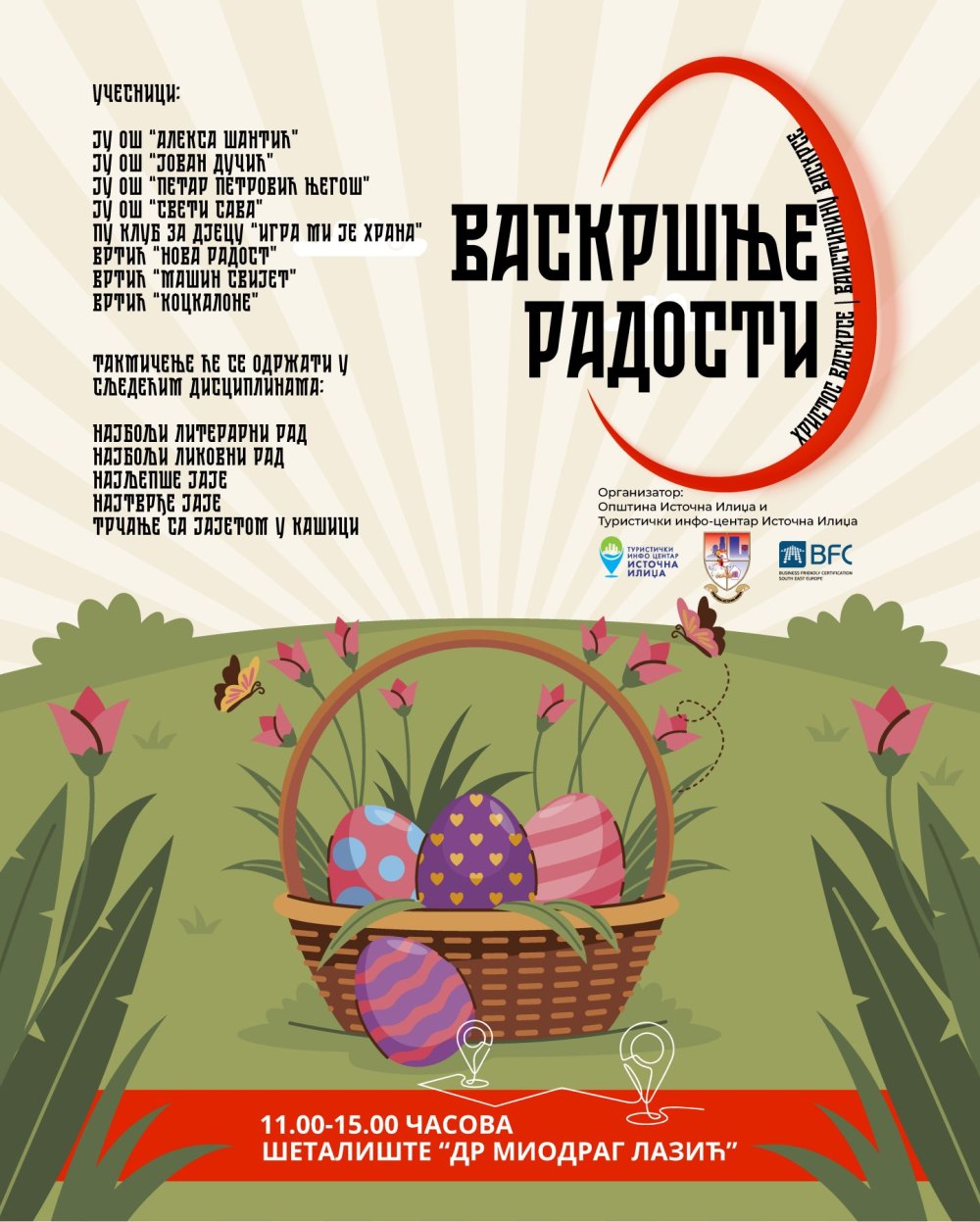 Povodom najradosnijeg hrišćanskog praznika Vaskrsa, Opština Istočna Ilidža, u saradnji sa Turističkim info-centrom, organizuje tradicionalnu manifestaciju „Vaskršnje radosti“.