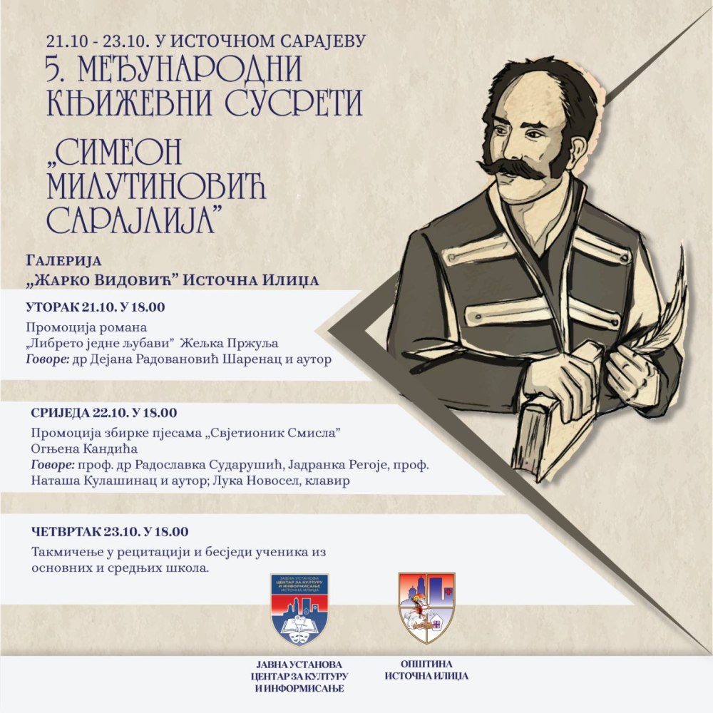 Пети међународни књижевни сусрети „Симеон Милутиновић Сарајлија“ ове године се одржавају од 21. до 23. октобра у Галерији „Жарко Видовић“ у Источној Илиџи.
