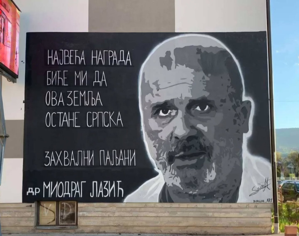 Мурал др Лазе краси од маја 2020. године центар Пала и Добрињу IV у Источној Илиџи.
